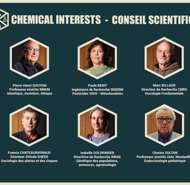 Chemical Interests se dote d'un conseil scientifique à la hauteur de ses ambitions. Un conseil transdisciplinaire pour une pensée complexe, systémique et globale. Parce que nous sommes convaincus que le problème se joue tout autant sur le terrain scientifique que sociologique et éthique.